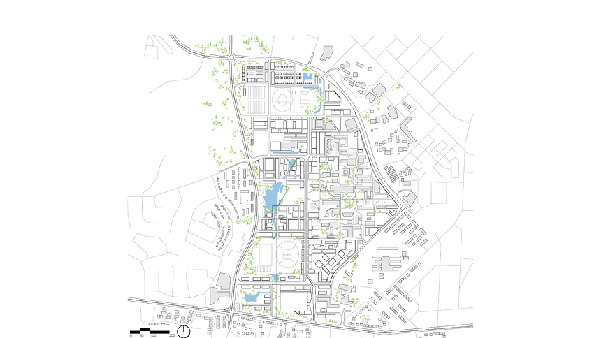 Il est intéressant de remarquer que la densité du campus existant de l’université Curtin l’empêche de développer le district d’innovation souhaitée au sein même des aménagements existants. Le plan directeur de Greater Curtin se construit ainsi sur les parties vacantes du site de l’université. Le résultat d’un tel aménagement donne l’impression que le campus existant ne subit pas de modification, mais se voit simplement entourer par de nouveaux usages. Au lieu de viser un tout hétérogène et innovant, le plan de Curtin donne l’impression que le campus conserve son aspect monofonctionnel et qu’il invite seulement les entreprises à venir rentabiliser son terrain autour d’elle.
